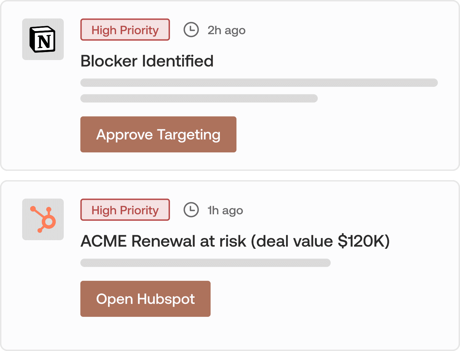 People, decisions, approvals, and blockers — surfaced instantly so nothing slows down.