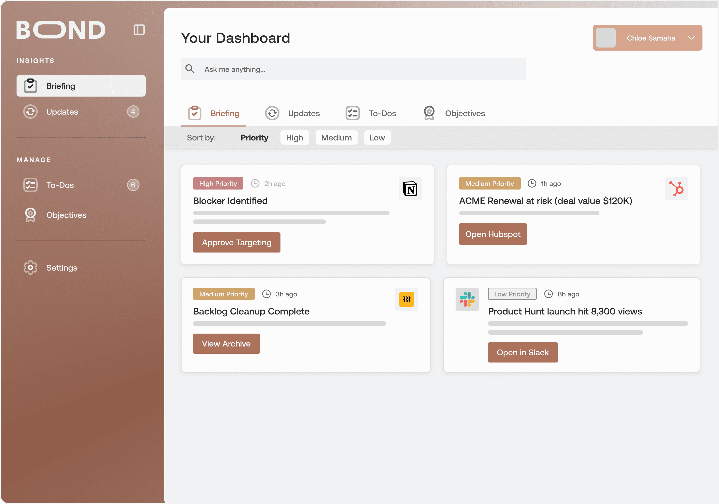 BOND connects to your existing stack instantly, enhancing your workflow instead of replacing it.